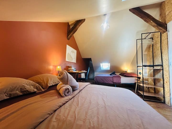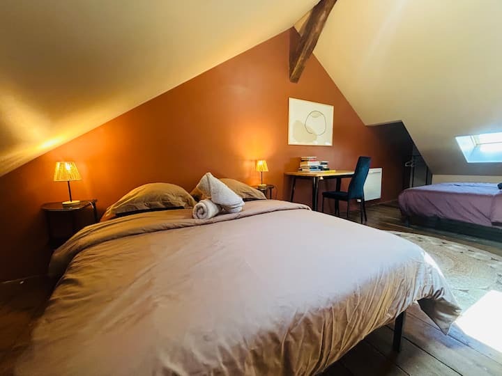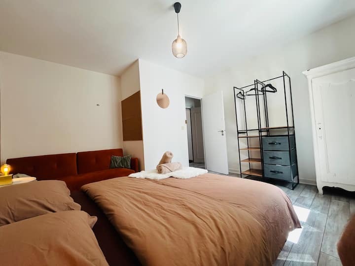 Welcome to Casa Urbaine! This magnificent Maison Angevine is a true haven of peace, ideally located right in the center of town. You'll be in one of Angers' most sought-after, residential neighborhoods, offering peace and quiet and close proximity to all amenities on foot. Designed to accommodate up to 13 people, the house has 5 bedrooms, making it the perfect choice for families, groups of friends or colleagues on business trips. It combines comfort and elegance.