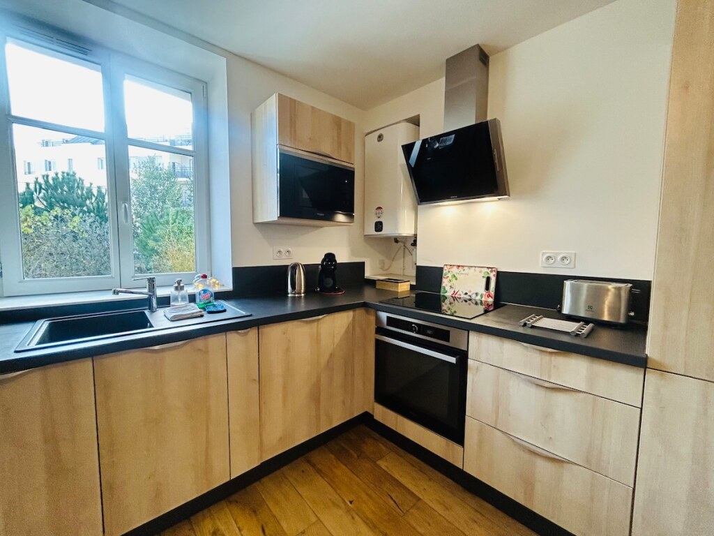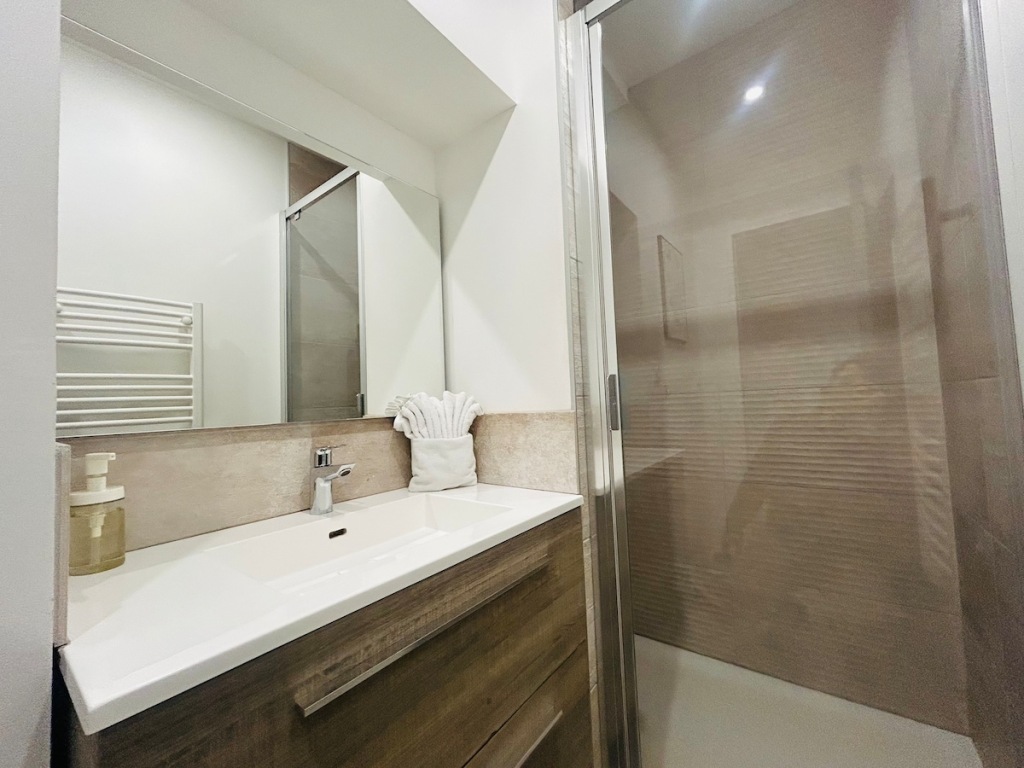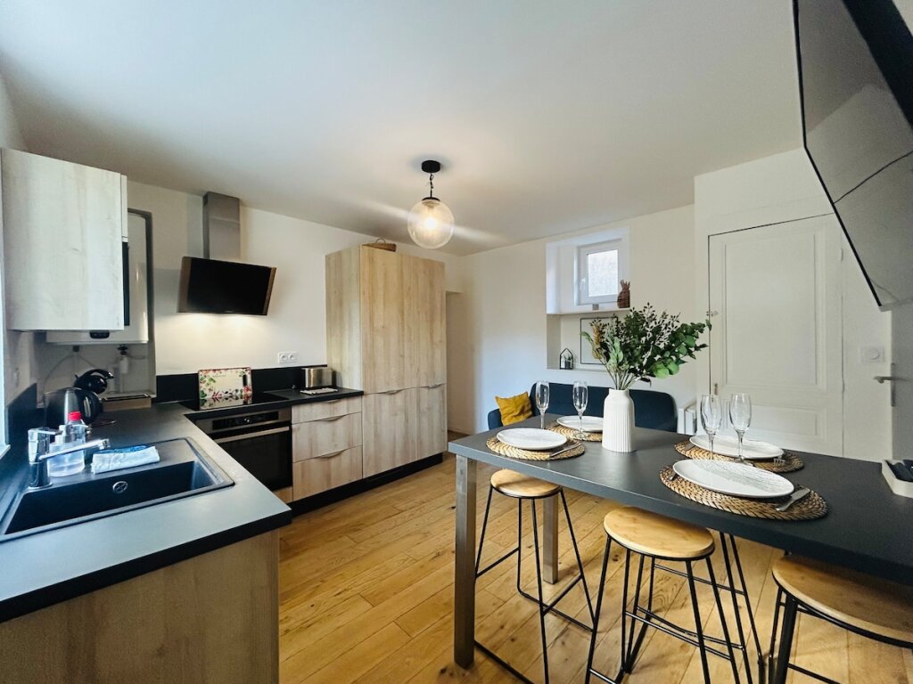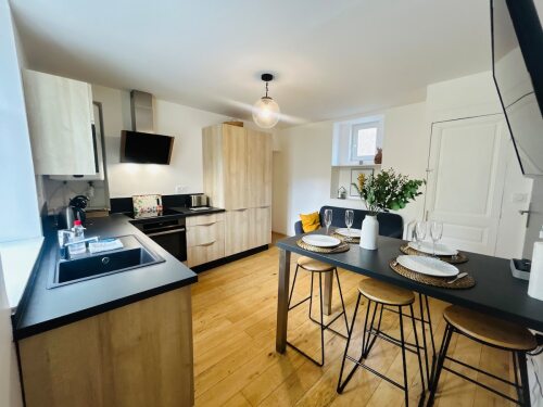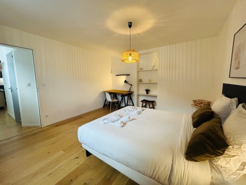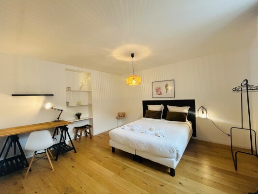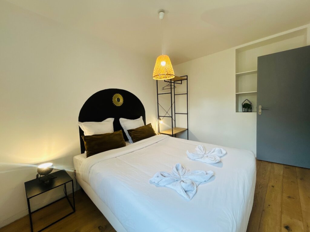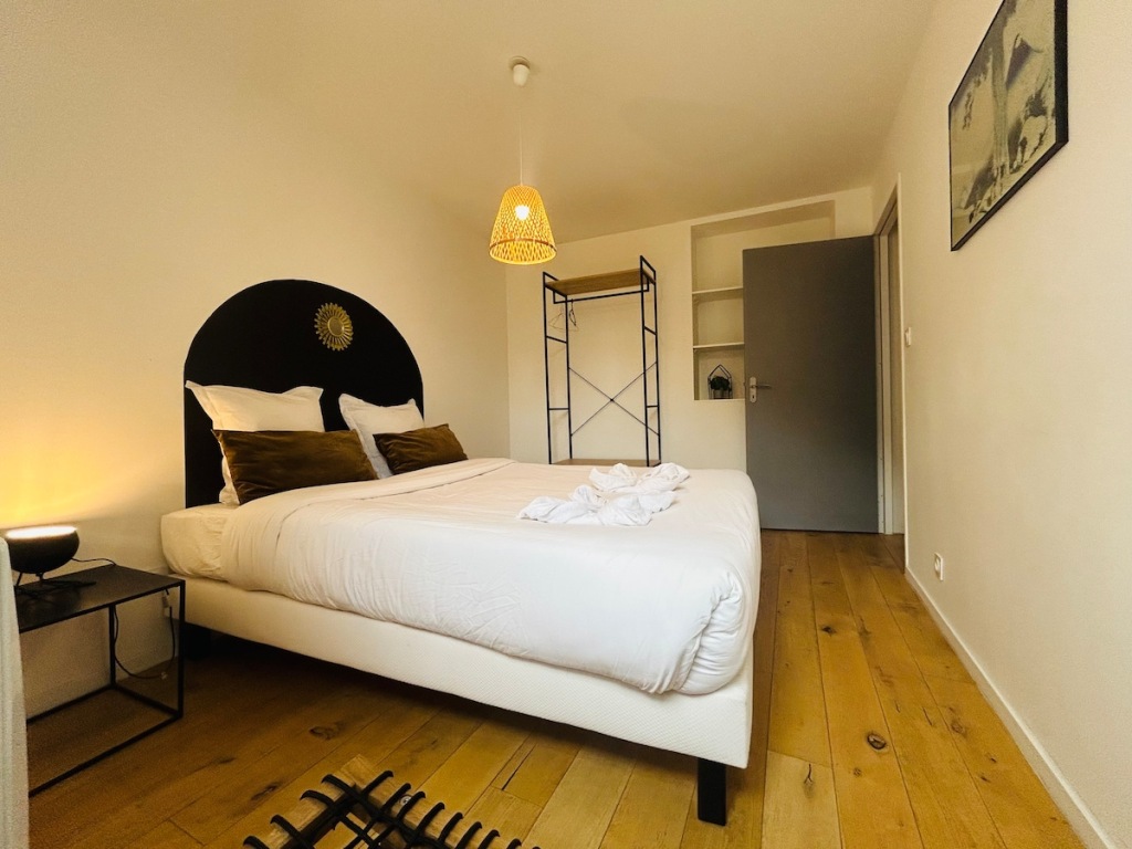 Le logement comprend : - Une pièce principale avec un coin repas pour 4 personnes, un canapé, une TV. - La cuisine est ouverte et entièrement aménagée et équipée. - 2 Très belles chambres avec un lit double pour 2 personnes 160 * 200. La literie est confortable et les…