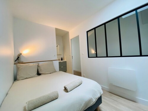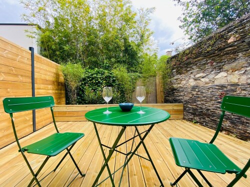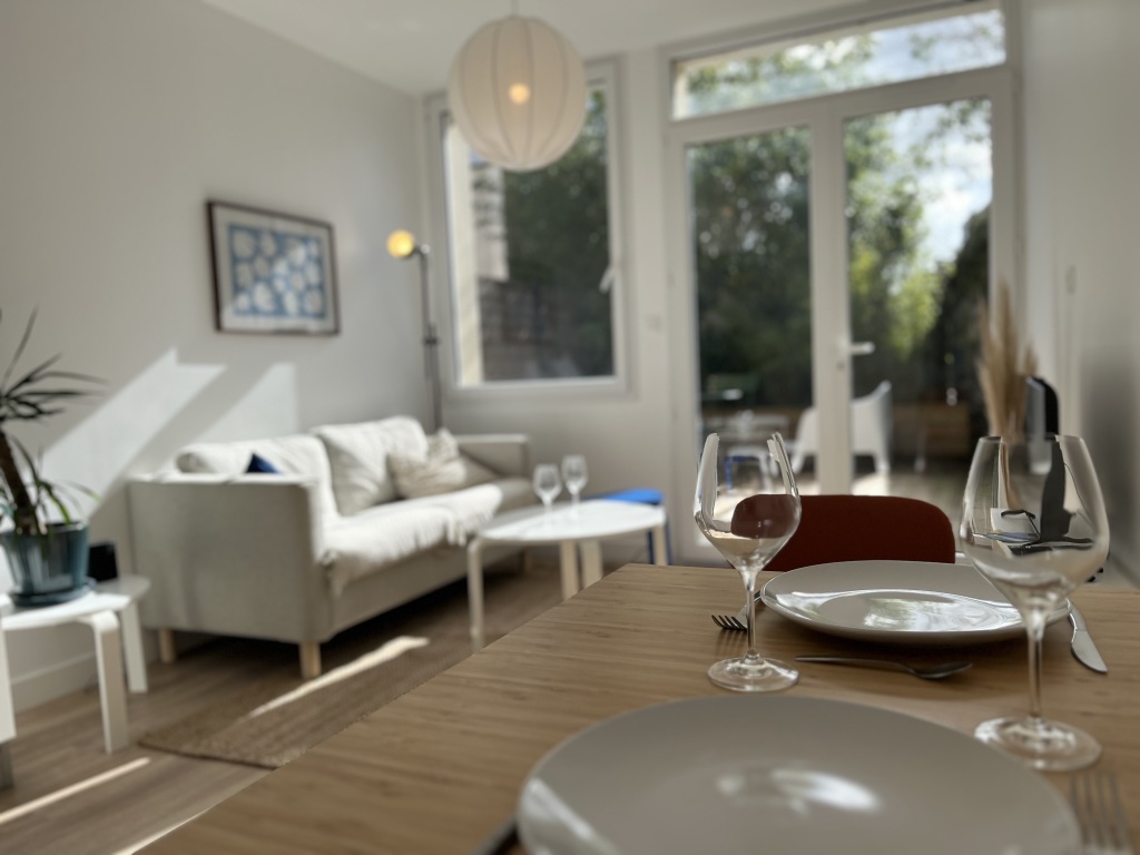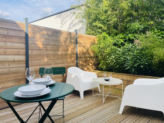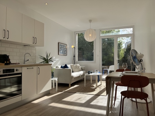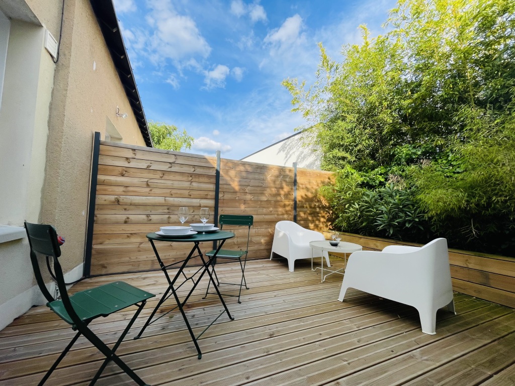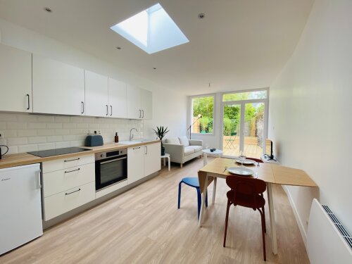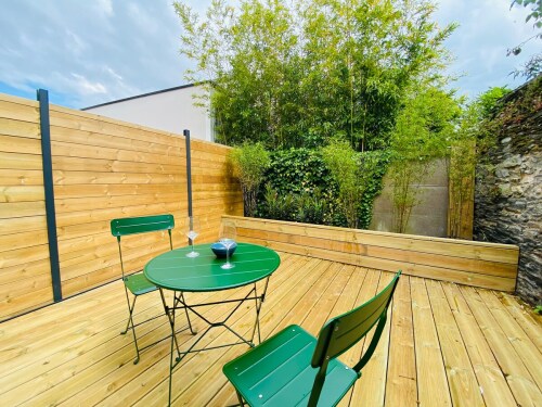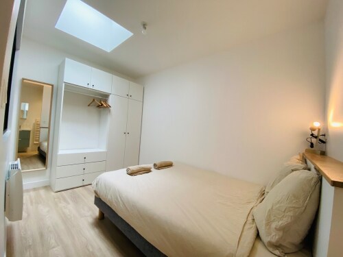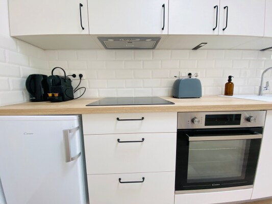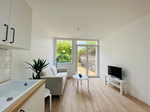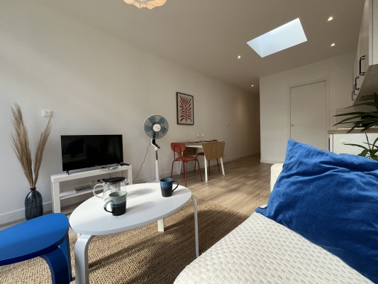 New flat close to the town centre. comprising : Entrance hall. A bedroom with a very comfortable double bed and en-suite shower room. Separate WC. Cupboard / Storage space. A fully-equipped kitchen. Large living room with dining area and TV area. Terrace. Closed garage with washing machine and tumble dryer.