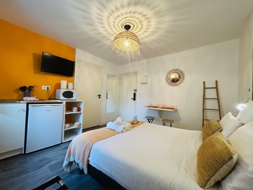 Bienvenue à La Casa Saint Joseph ! Studio Premium, situé au sein du magnifique Logis Saint - Joseph, une adresse confidentielle en plein centre d’Angers. Profitez d’un logement rénové, calme et élégant, niché dans l’un des plus beaux quartiers du centre ville, à seulement quelques pas de toutes les commodités. Ce studio soigneusement aménagé offre un espace chaleureux, idéal pour un séjour professionnel ou touristique. Vous y trouverez : Confort, douceur, standing et tranquillité !