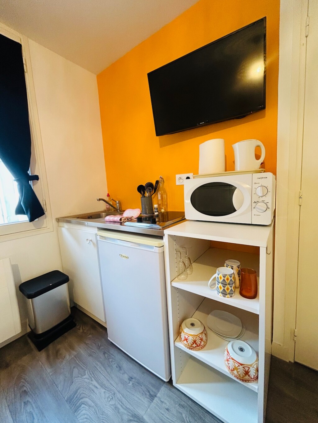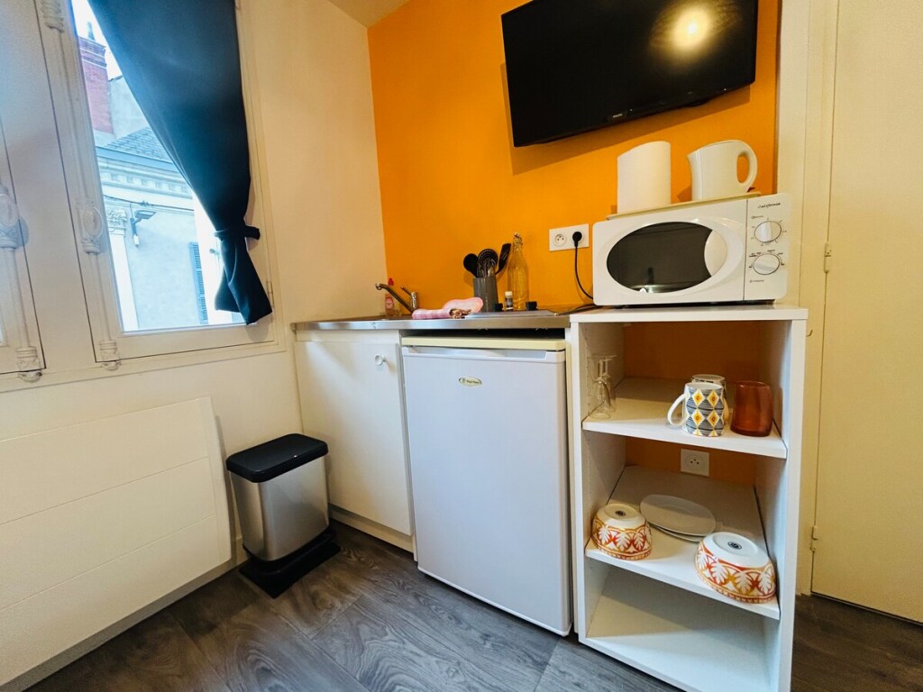Une kitchenette équipée et fonctionnelle.